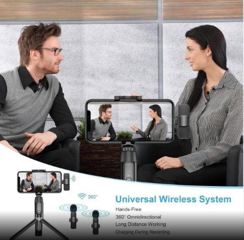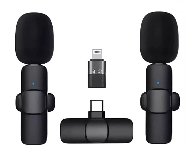 Безжичен влогърски микрофон / Wireless Lavalier Microphone / Type - C & Lightning - черен