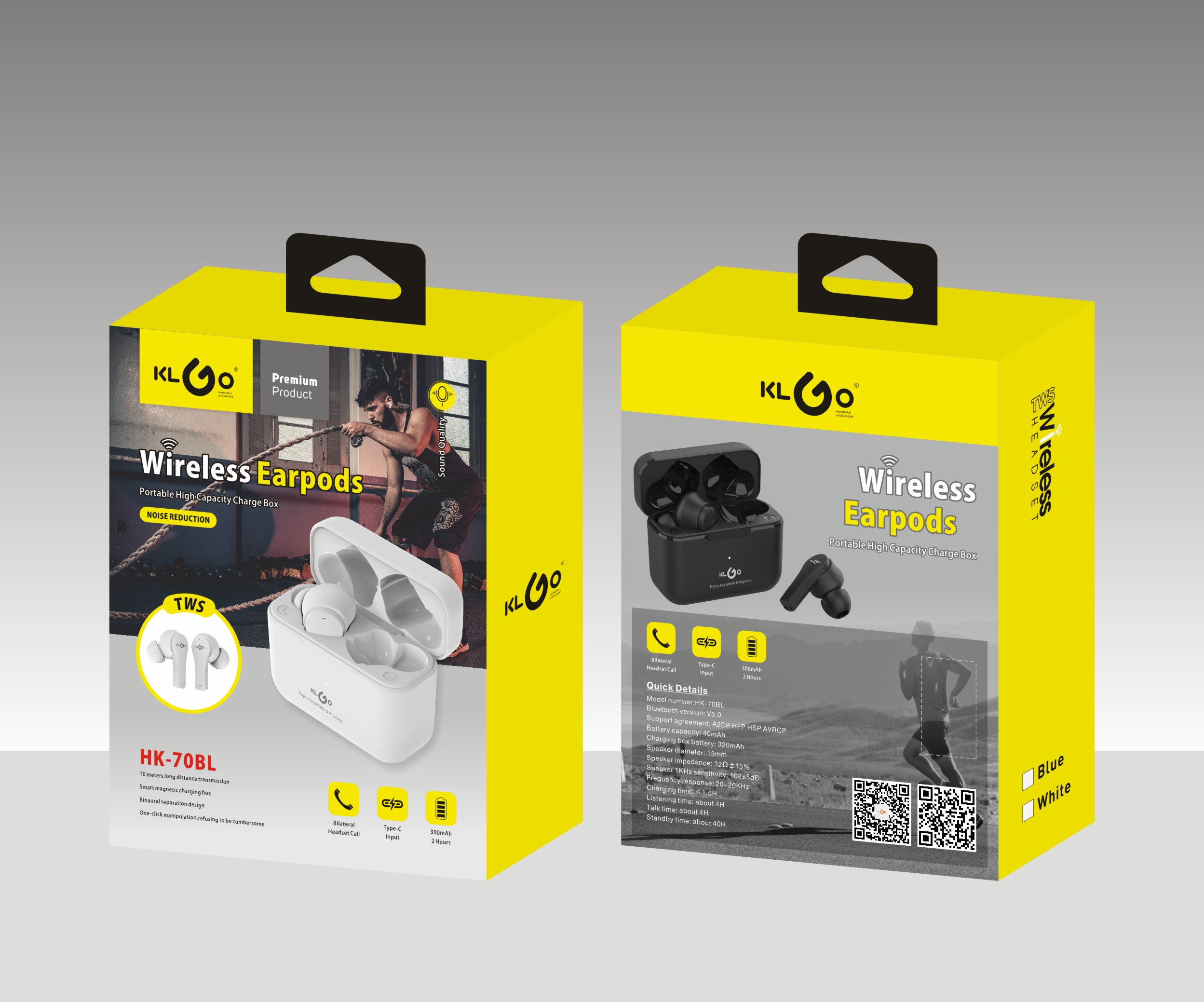 Безжични слушалки KLGO HK-70BL Wireless Earpods - черен
