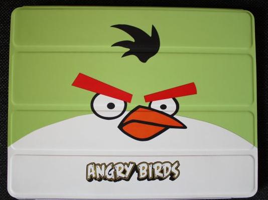 - Предлагаме на Вашето внимание нов модел кожен калъф със стойка с оригинален дизайн Angry Birds за Apple iPad 2, iPad 3, iPad 4