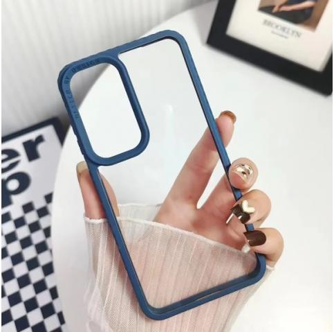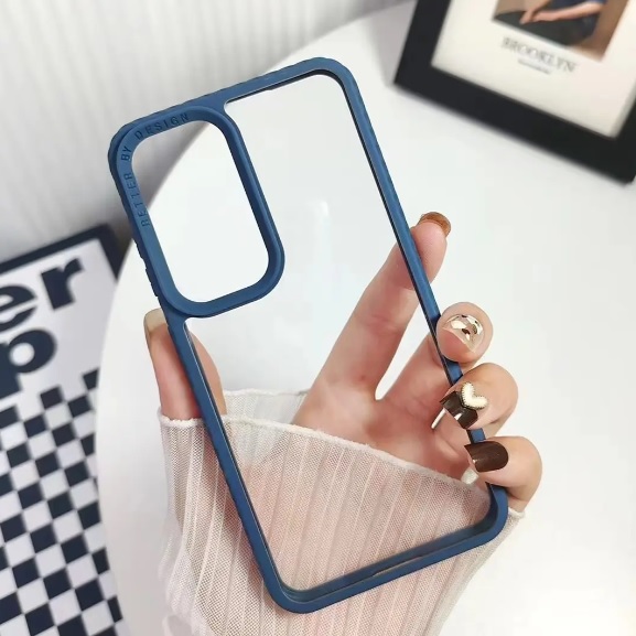 Луксозен твърд гръб / кейс / Simple Case за Xiaomi Redmi 14C - прозрачен / синя силиконова рамка