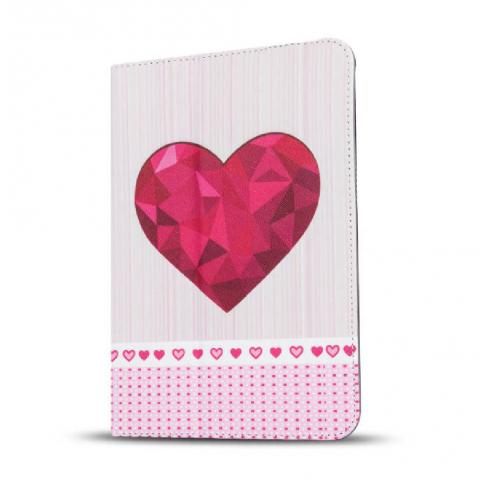 Универсален кожен калъф със стойка за таблет 9'' / 10'' - Цикламено сърце