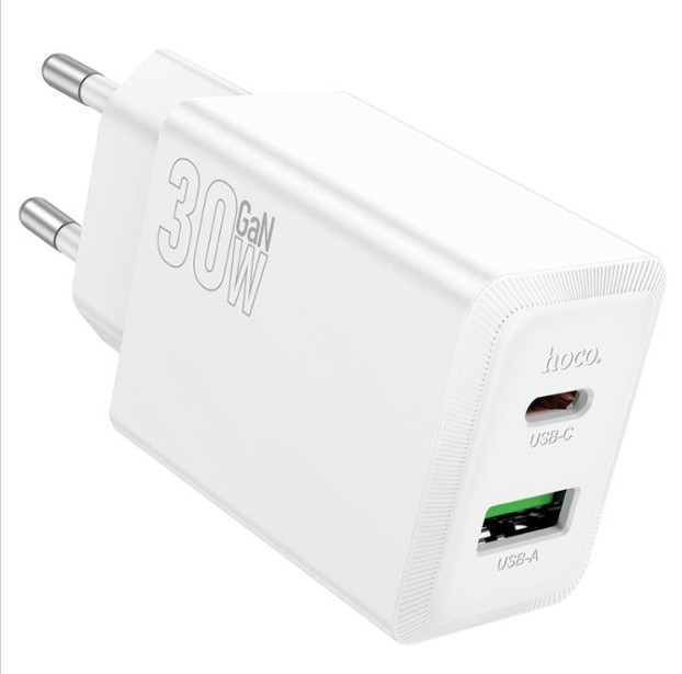 Универсално зарядно устройство / адаптер / HOCO N71 Nuevo PD30W+QC3.0 / Dual Port Charger / USB & Type C - бяло