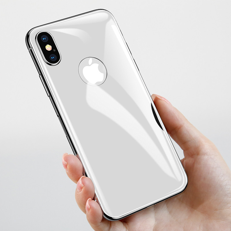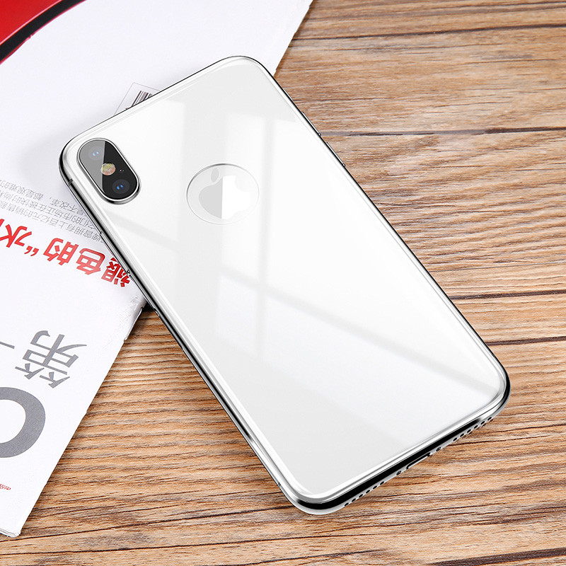 - Закален бял стъклен протектор Baseus за гърба на iPhone X.